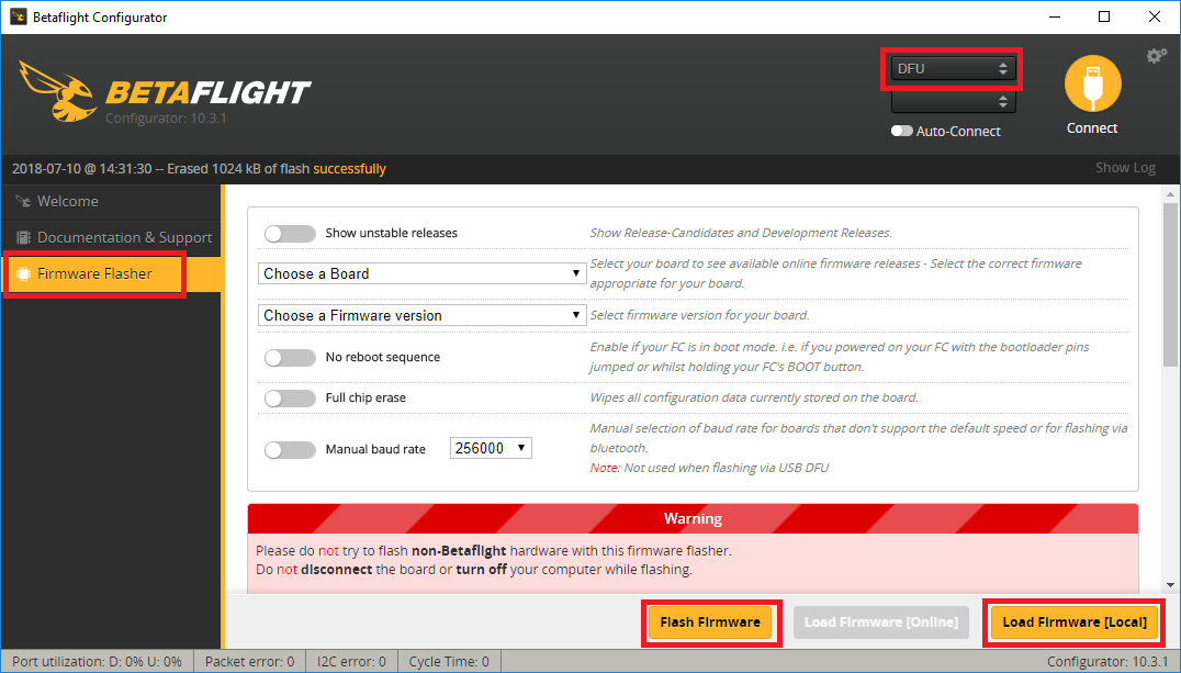 按住按钮(这次不绑定启动)并打开自动驾驶仪的电源。这将使电路板处于 dfu 模式。